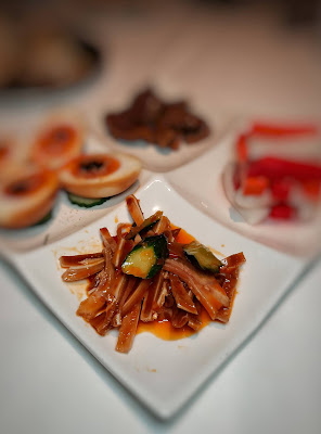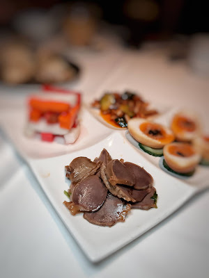 另一道「香油鴨腎」以大廚自製的家鄉揚州滷水泡浸,原來是加入了丁香及當歸,味道十分獨特,切成薄片,而保留了嚼口,陣陣麻油香氣,相當吸引。