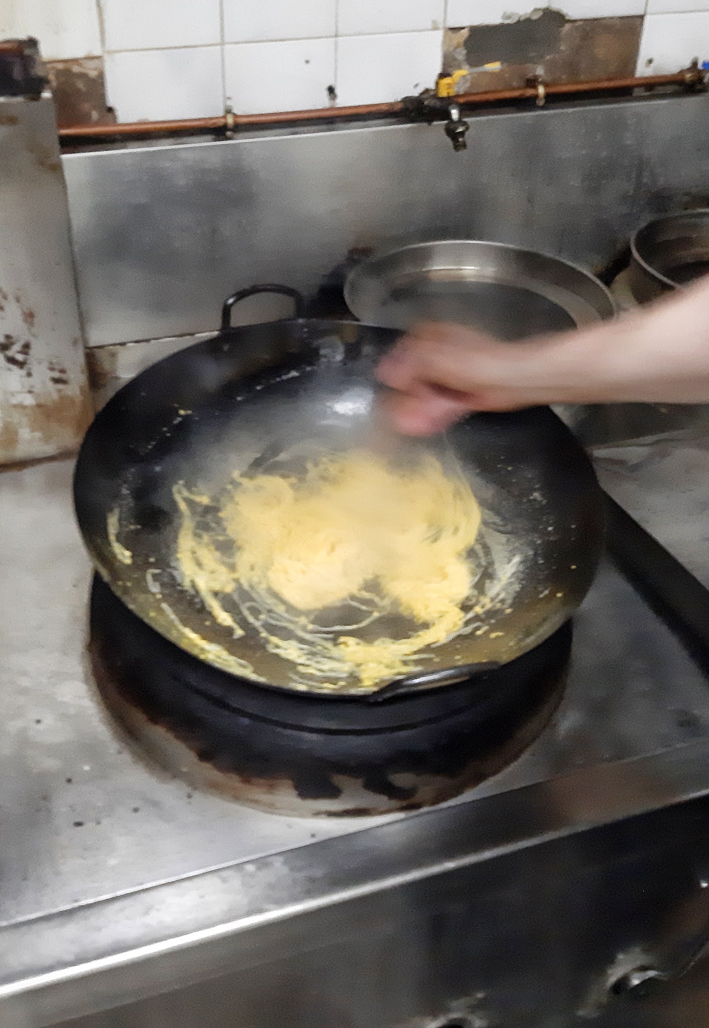 由於是用油渣爐煮食,所以每分火喉都不能有絲毫大意,以免蛋漿過熟,但又要每條粉絲沾上蛋漿,芽菜會「出水」,但又要炒得爽脆,難度甚高。