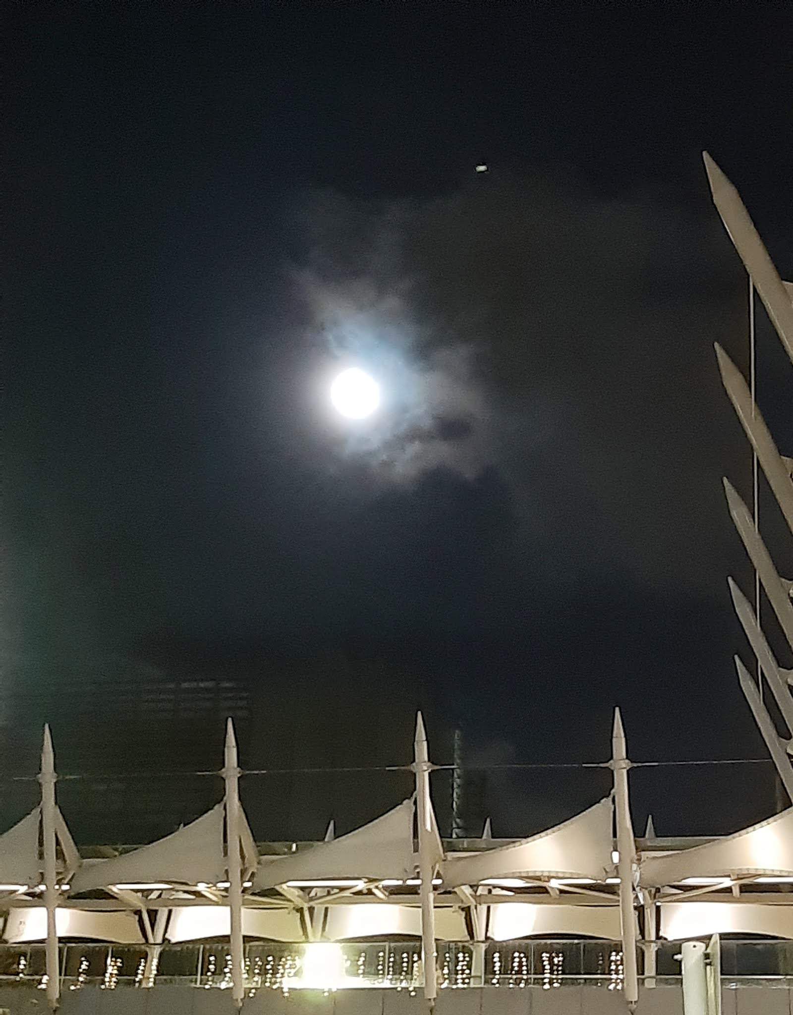 是晚是「迎月」夜,一家人在回家的路上說說笑笑,看著天上的混圓的月亮,真有點「人月團圓」的氛圍!