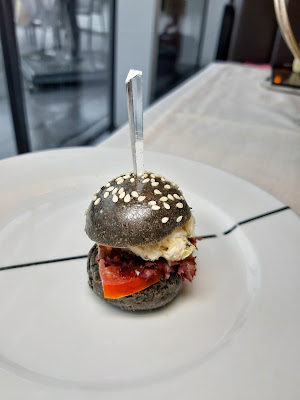 鹹點中最喜歡的一個,當然海鮮另計,漢堡包絲毫不覺韌,中間放置藍蟹肉、新鮮沙律菜及蕃茄片,食落爽脆甜美,下午時間有點餓,正好醫肚。